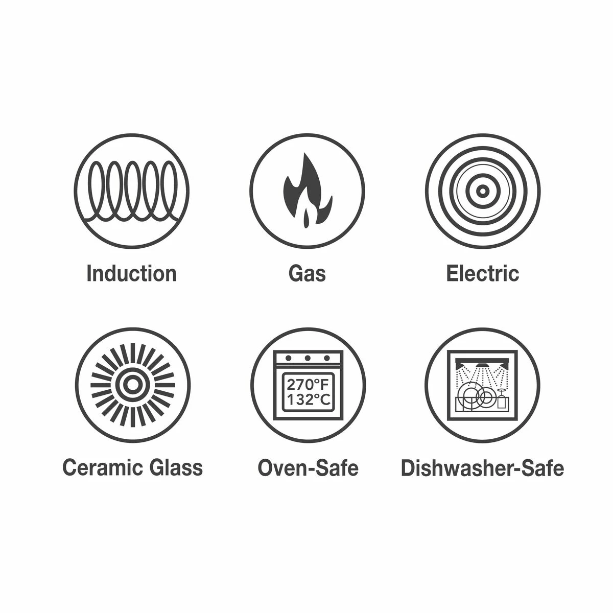 – Compatible with induction, gas, electric and ceramic glass cooktops