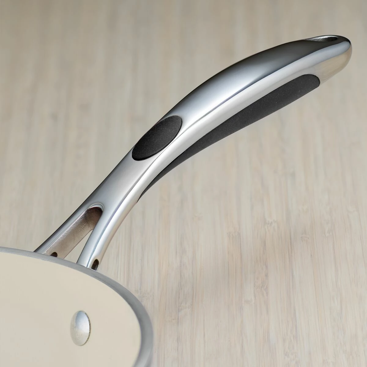 Tramontina”s Ceramica Deluxe 8 in Ceramic Fry Pan is the ideal option for aspiring chefs who want a pop of design in their kitchen, as well as a durable go-to pan for scrambling eggs and making pancakes. The Ceramica Deluxe cookware line features heavy-gauge aluminum construction, a durable porcelain-enamel exterior and an easy-to-clean ceramic interior that is PTFE, PFOA, lead- and cadmium-free. The riveted, ergonomically designed soft-grip cast stainless steel handle provides added support when handling. Oven-safe up to 350°F / 176°C and compatible with gas, electric, and ceramic glass cooktops.
